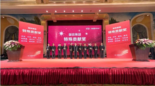 致辭結(jié)束,慶典安排了多輪頒獎(jiǎng)環(huán)節(jié),為國信優(yōu)秀戰(zhàn)略合作伙伴頒發(fā)證書;為在國信發(fā)展歷程中,做出特殊貢獻(xiàn)的十名員工頒獎(jiǎng),為其授勛“國信集團(tuán)特殊貢獻(xiàn)獎(jiǎng)”;同時(shí)分別為入職國信十年、十五年及二十年司齡功勛員工頒獎(jiǎng)。